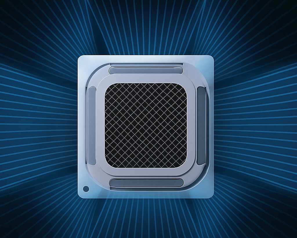 Unikālais gaisa izplūdes žalūziju dizains apvienojumā ar augstas kvalitātes līdzstrāvas (DC) ventilatoru nodrošina vienmērīgu gaisa sadali pilnā 360° diapazonā visā telpā. Šī sistēma ļauj gaisam cirkulēt vienmērīgi gan horizontāli, gan vertikāli, efektīvi novēršot aukstās vai karstās zonas. Rezultātā komforta līmenis saglabājas stabils neatkarīgi no telpas izmēra vai plānojuma. Papildus tam modernā ventilatora tehnoloģija optimizē gaisa plūsmu atbilstoši darba režīmam, uzlabojot gan dzesēšanas, gan apkures efektivitāti un vienlaikus samazinot kopējo enerģijas patēriņu.