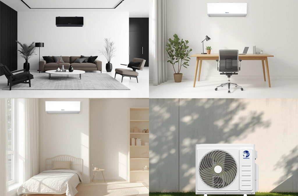 NØRDIS NOVA ir pieejams divās elegantās krāsās — baltā un melnā. Neatkarīgi no jūsu interjera stila — moderna, klasiska vai minimālistiska — šis gaisa kondicionieris dabiski un harmoniski iekļaujas jebkurā telpā, papildinot to ar estētisku vienkāršību.