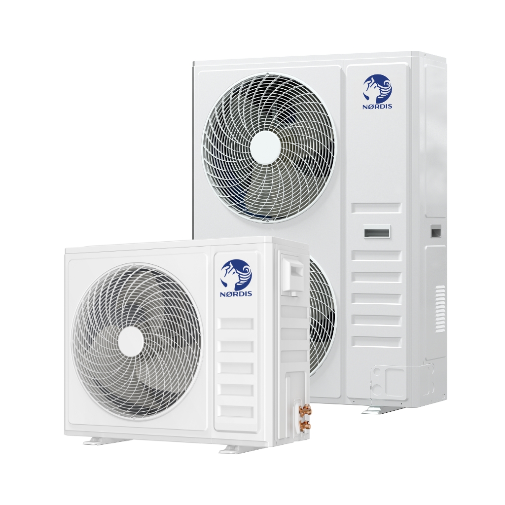 NØRDIS NV6+ sērijas āra bloki ir aprīkoti ar pilnu DC invertora sistēmu ar diviem rotācijas kompresoriem, kas nodrošina augstu efektivitāti gan pie pilnas, gan daļējas slodzes. Šī tehnoloģija nodrošina stabilu, klusu un enerģiju taupošu darbību, ideāli līdzsvarojot veiktspēju un komfortu.