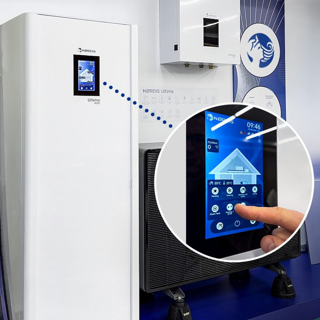 NØRDIS Ultima Mono iekšējais bloks bez integrētas tvertnes ir moderns siltumsūkņa modulis, kas nodrošina visas sistēmas vadību, siltuma un dzesēšanas sadali, kā arī karstā ūdens sagatavošanas pārvaldību.